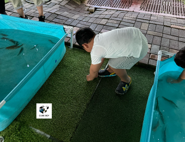 도착하여 주차하시면 옆에 미꾸라지 체험존이 있으며 그 옆에 교육장소로 보이는 곳이 있습니다.