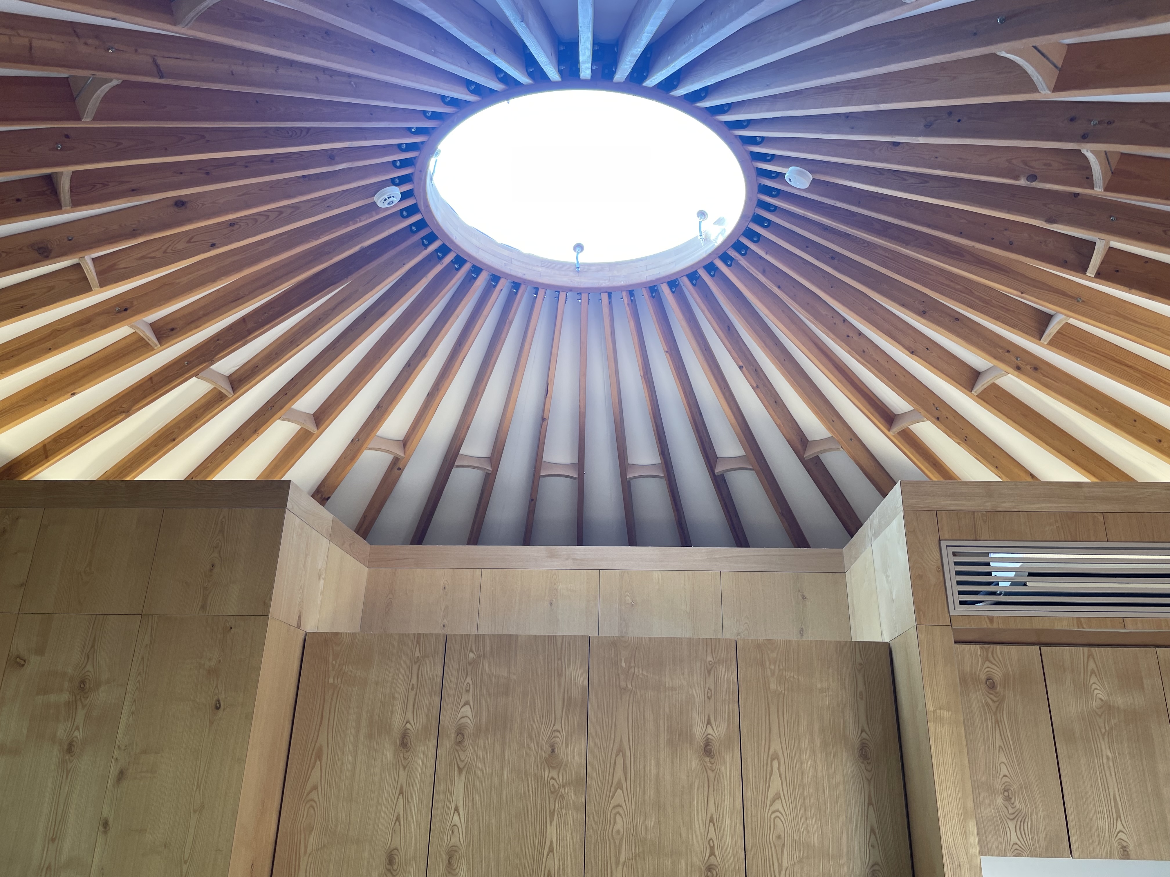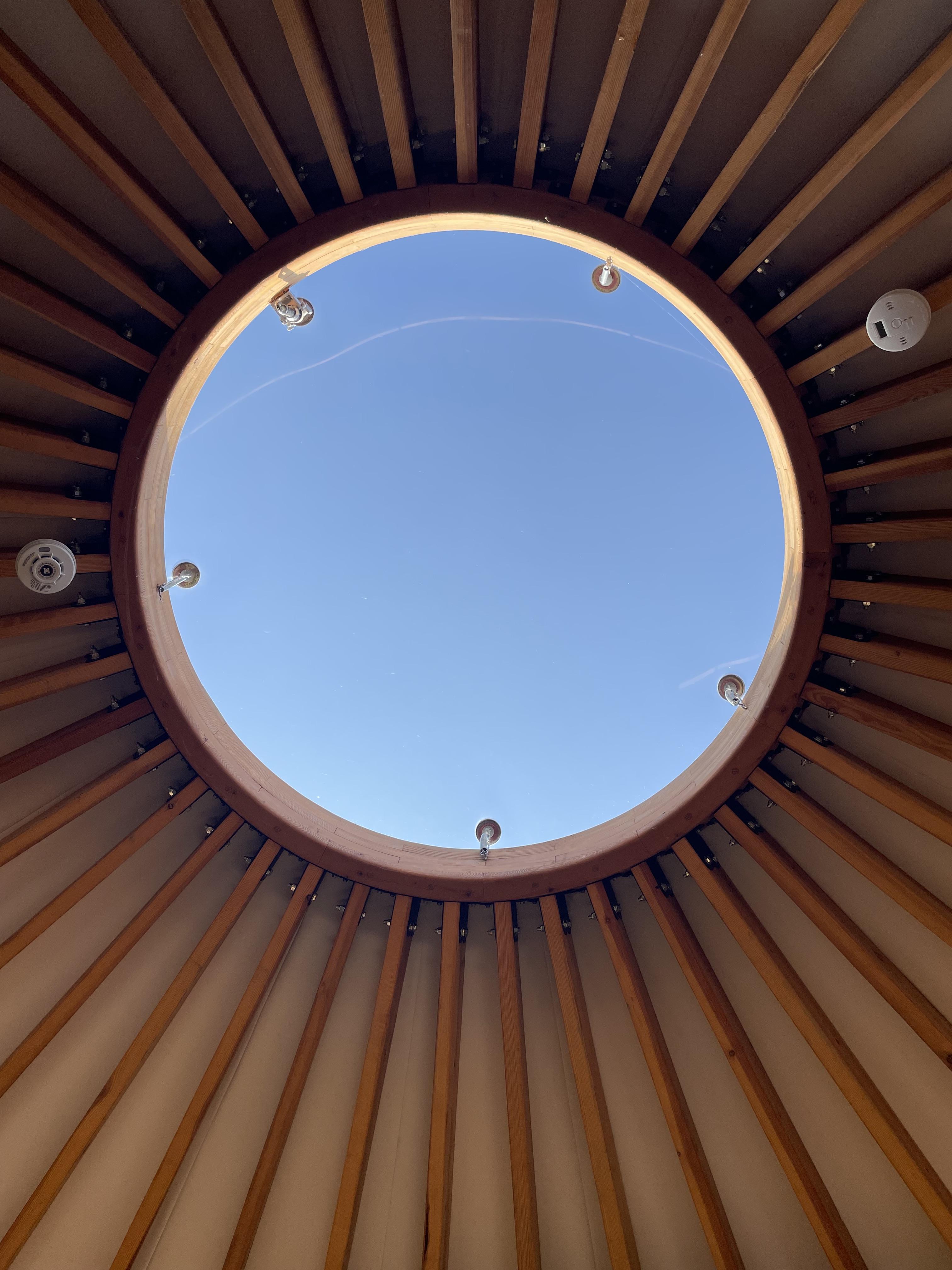 게르스타일의 숙소로 천장에 원형으로 유리인지 플라스틱인지 바깥을 볼 수 있게 되어있습니다.