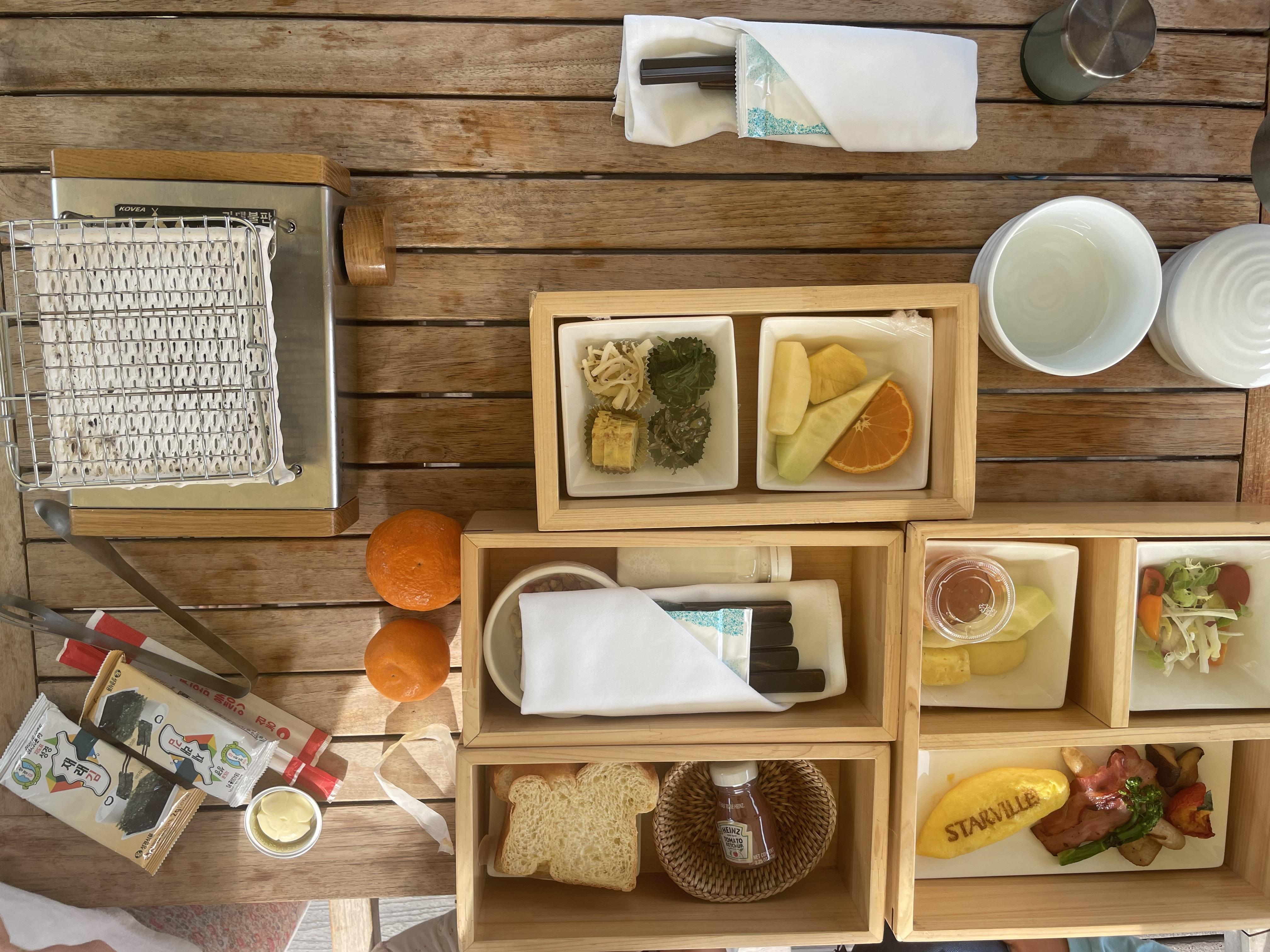 아메리칸브랙퍼스트와 제주 가파도 성게 미역국입니다.